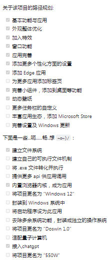 作者说明的目前已实现功能(打√为已实现)(来源于 GitHub)