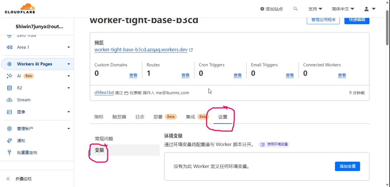 在境内 workers.dev 免费域有些被墙了,建议绑定自定义域名