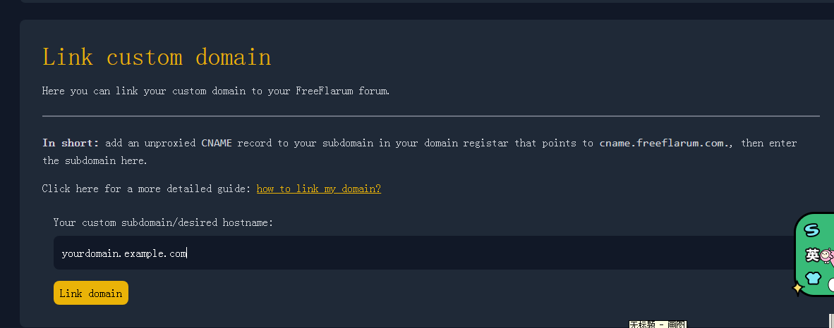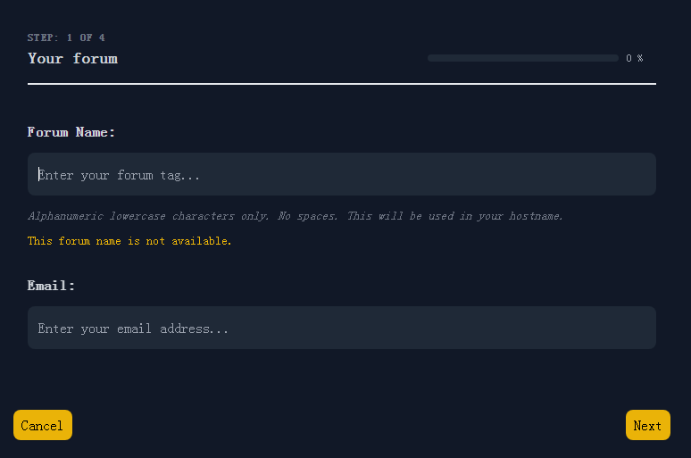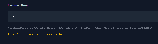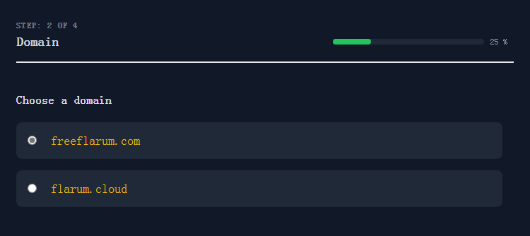 Forum Name(论坛名,到时候是显示在 xxx.freeflarum.com 或 xxx.flarum.cloud 中的 xxx 部分)
