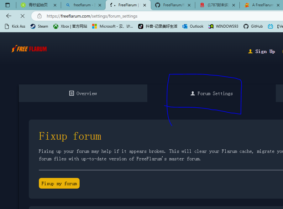在搜索引擎搜索 Freeflarum 或直接打开 FreeFlarum | Sign Up