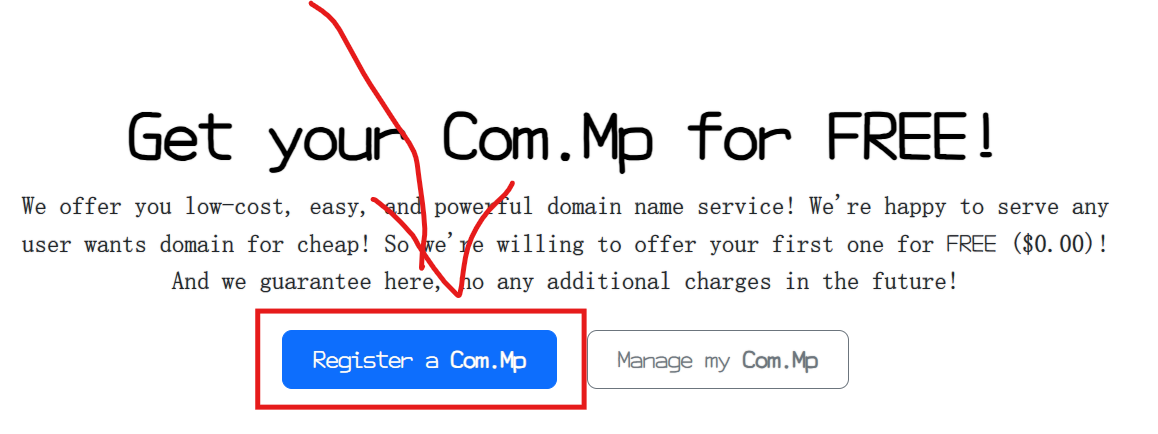 打开 Get your Com.MP domain name for FREE!