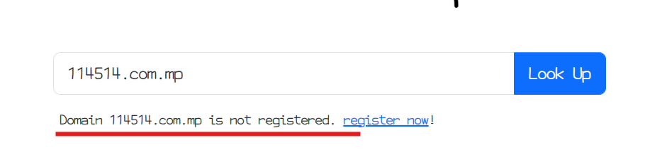 在输入框里输入自己想要注册的域名,如果提示这个就代表未注册,可以点击旁边的“register now”注册