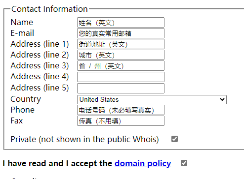 国家地区可以选中国(China),但是最好填写西方国家的信息,到时候通过的快,比如美国(United States)