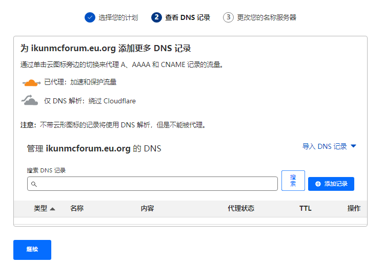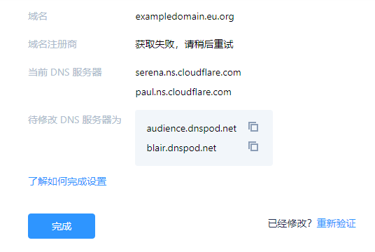 申请 eu.org 免费域名的网站本身不支持解析,需要托管到第三方解析平台